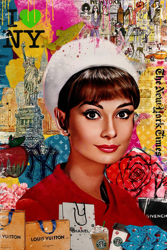 " Pizza girl" Rudowłosa dziewczyna w berecie kocha jeść pizzę , Styl Pop Art